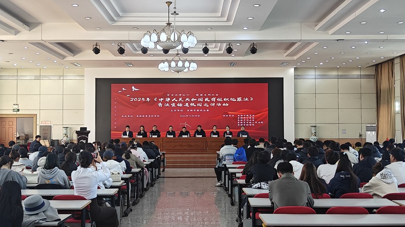 为深入落实省、市扫黑办工作总体部署,进一步增强师生法治意识,筑牢校园安全防线,切实将《中华人民共和国反有组织犯罪法》宣传工作落到实处。10月29日,市政法委扫黑办联合相关部门到我校开展《中华人民共和国反有组织犯罪法》的普法宣传“进校园”巡讲活动。市委政法委、市公安局、市司法局、市人民检察院、市中级人民法院等相关部门领导莅临现场,副校长王春梅和相关职能部门负责人参加了本次活动。活动由市教育局安全科科长李永增主持。